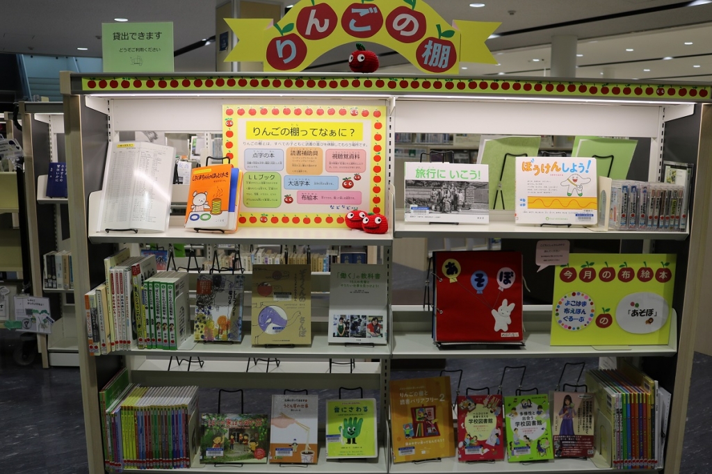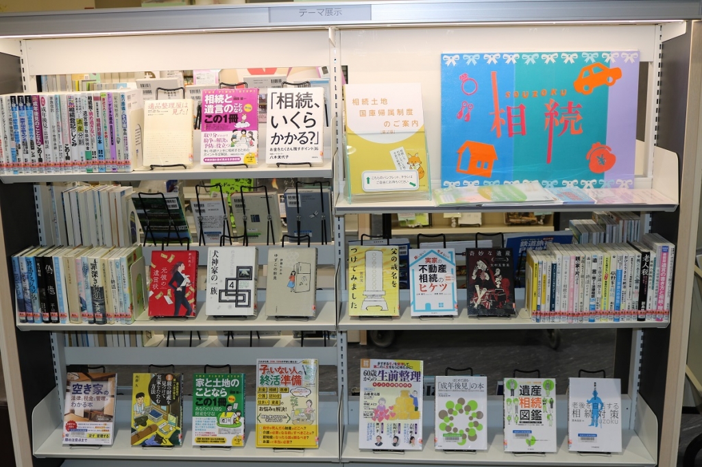 ■テーマ展示コーナー(貸出カウンター正面)「りんごの棚」■展示コーナー(貸出カウンター正面)「相続」