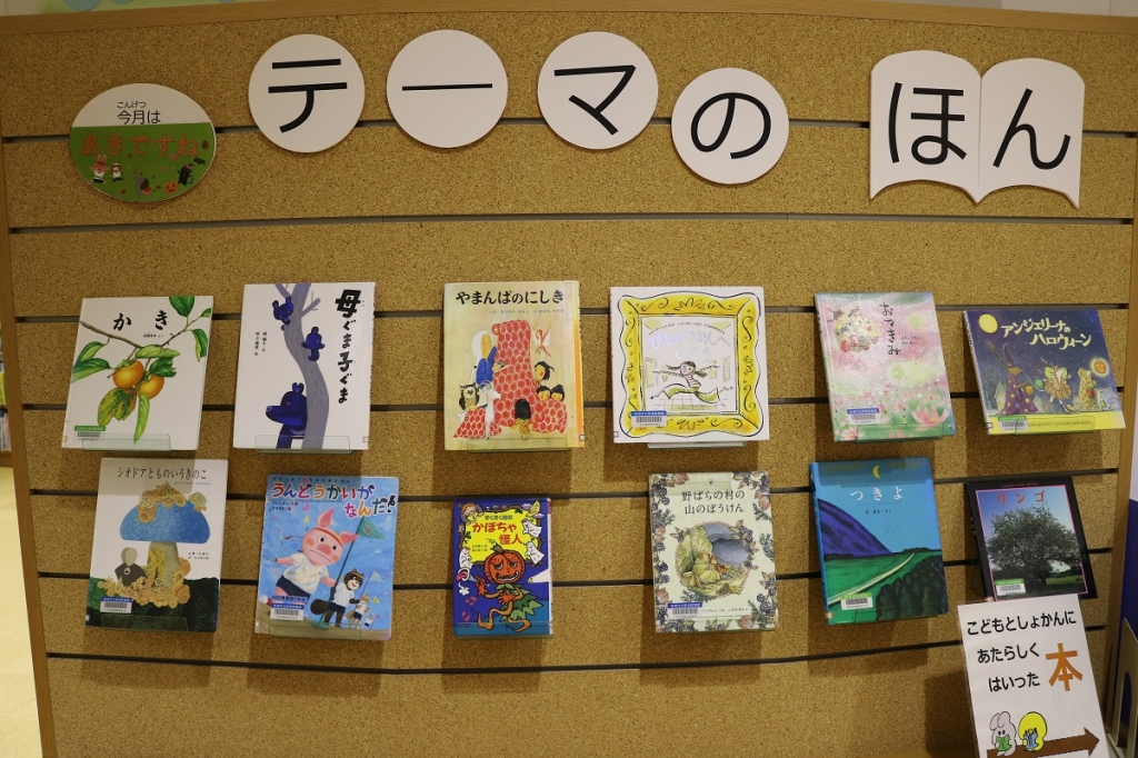 ■展示コーナー(貸出カウンター正面)「安吾のセカイ」■展示コーナー(貸出カウンター正面)「職場体験の中学生の皆さん おすすめ本」「司書おすすめの本」■こどもとしょかん テーマのほん「あきですね」