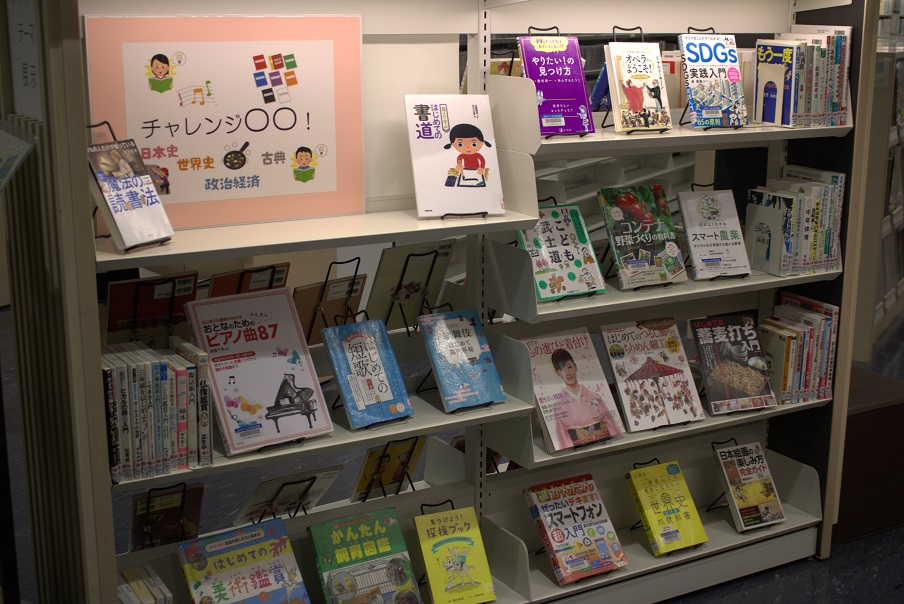 「チャレンジ○○!」■展示コーナー(貸出カウンター正面)「安吾のセカイ」■展示コーナー(貸出カウンター正面)「職場体験の中学生の皆さん おすすめ本」「司書おすすめの本」■こどもとしょかん テーマのほん「ほっこりほかほか」