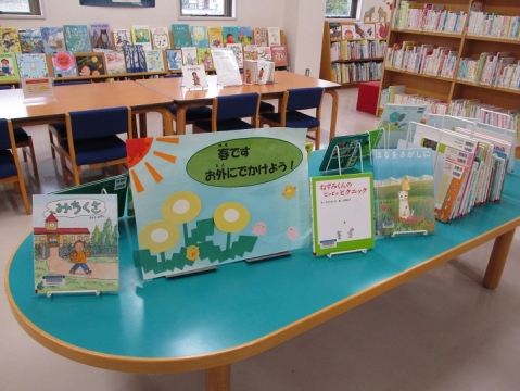 雪がとけてあたたかくなってきました。おさんぽの本やピクニックの本など、お外に出かけたくなるような本をあつめました。